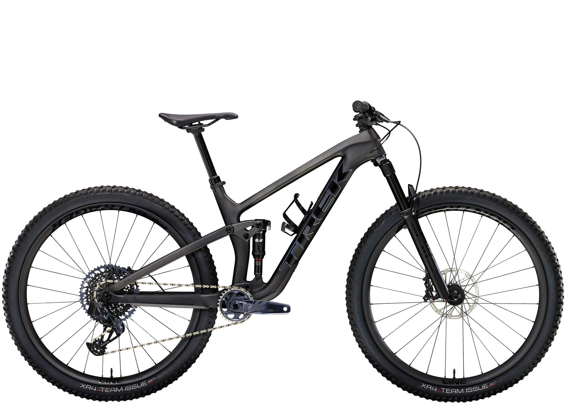 Einen leichten und steifen Vollcarbonrahmen, eine RockShox Pike Select+-Federgabel mit 130 mm Federweg, einen RockShox Deluxe Ultimate RCT-Dämpfer mit 120 mm Federweg und einen drahtlosen elektronischen SRAM GX Eagle AXS-Antrieb mit extragroßem 52-Zähne-Klettergang. Außerdem kommt es mit breiten Bontrager Line Elite 30-Carbonlaufrädern samt Rapid Drive-Nabe mit 108 Zähnen für einen verzögerungsfreien Kraftschluss, einer Bontrager Line Elite-Variosattelstütze und einem Carbonlenker.