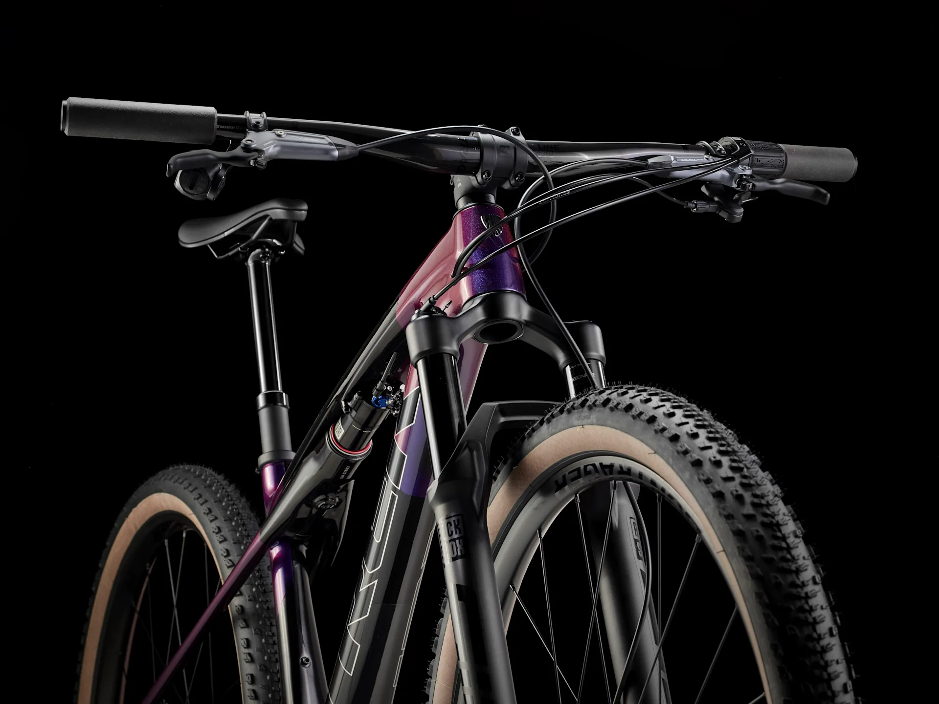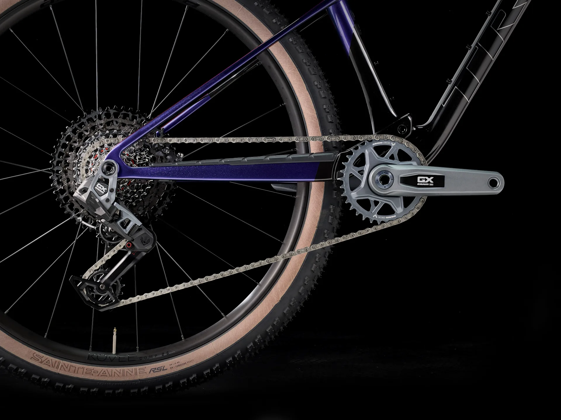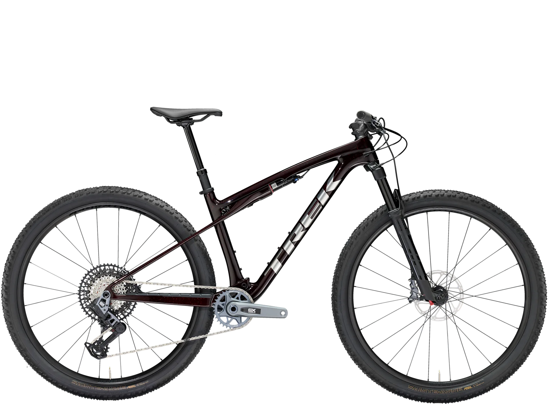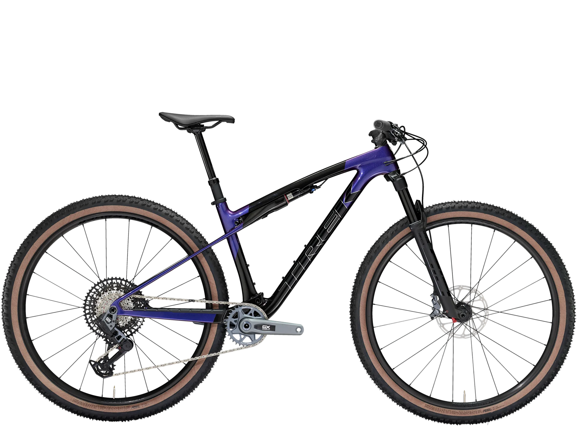 Einen federleichten Rahmen aus High-Modulus SL OCLV Mountain Carbon mit moderner XC-Geometrie. Außerdem eine RockShox SID 110-mm-Federgabel mit DebonAir-Federung und Rush RL Dämpfung und einen RockShox SIDLuxe IsoStrut 80-mm-Hinterbaudämpfer – natürlich inklusive Remote-Lockout. Eine komplett drahtlose elektronische SRAM GX AXS 12fach-Transmission, Bontrager Kovee Comp 25 Laufräder, einen Bontrager Line Pro Carbonlenker, eine Bontrager Line Variosattelstütze und hydraulische SRAM Level Bronze 4-Kolben-Scheibenbremsen.