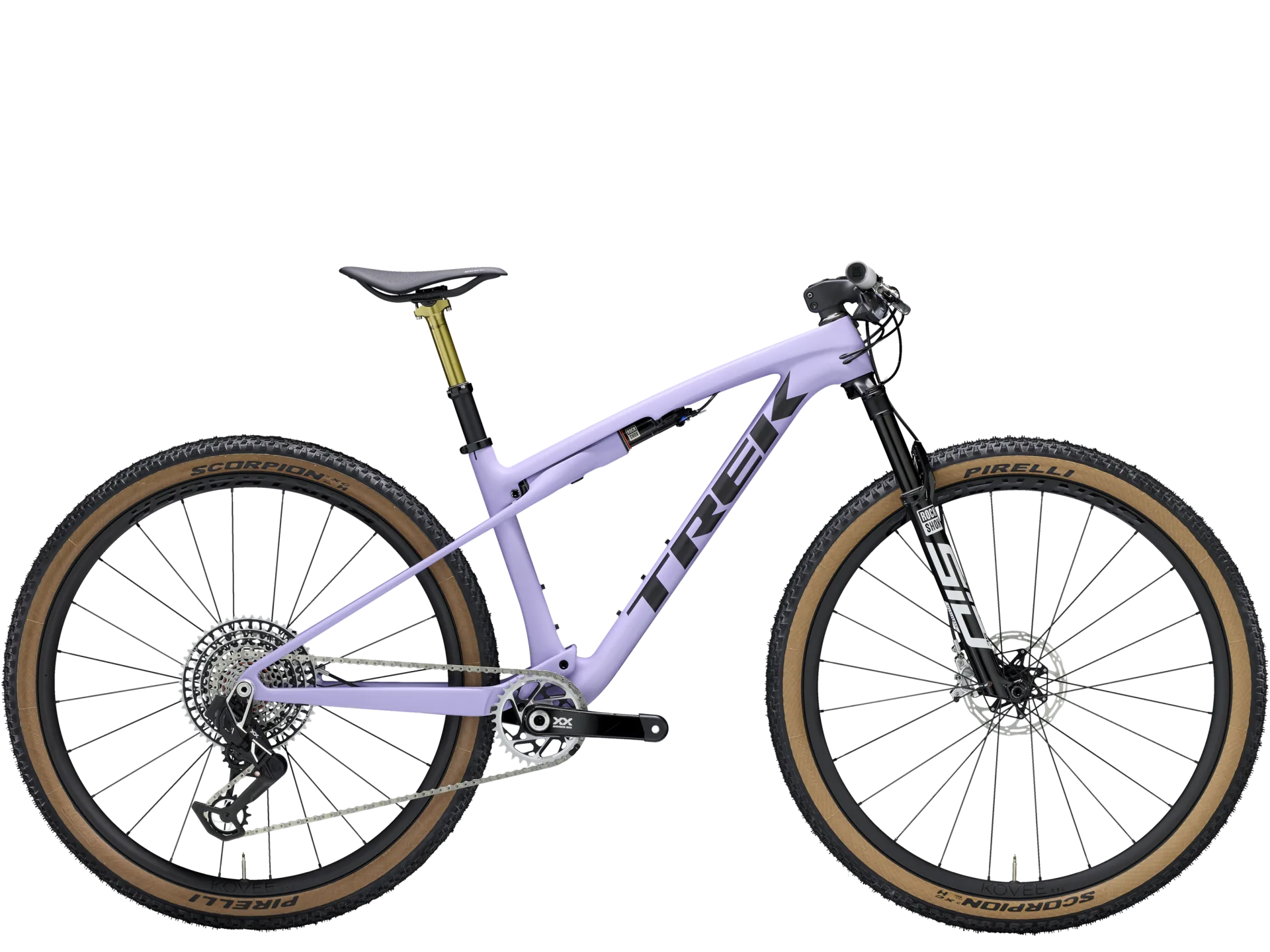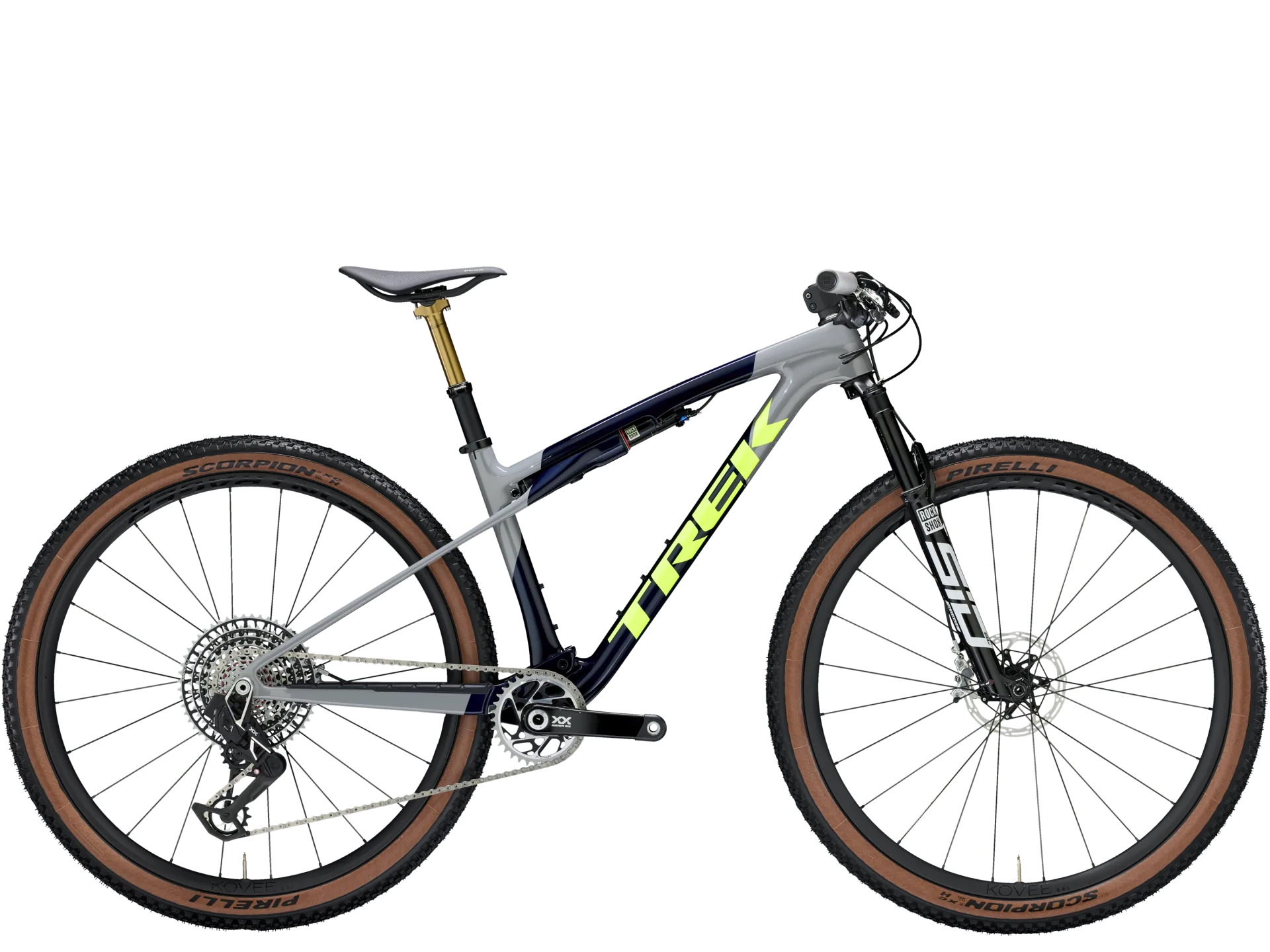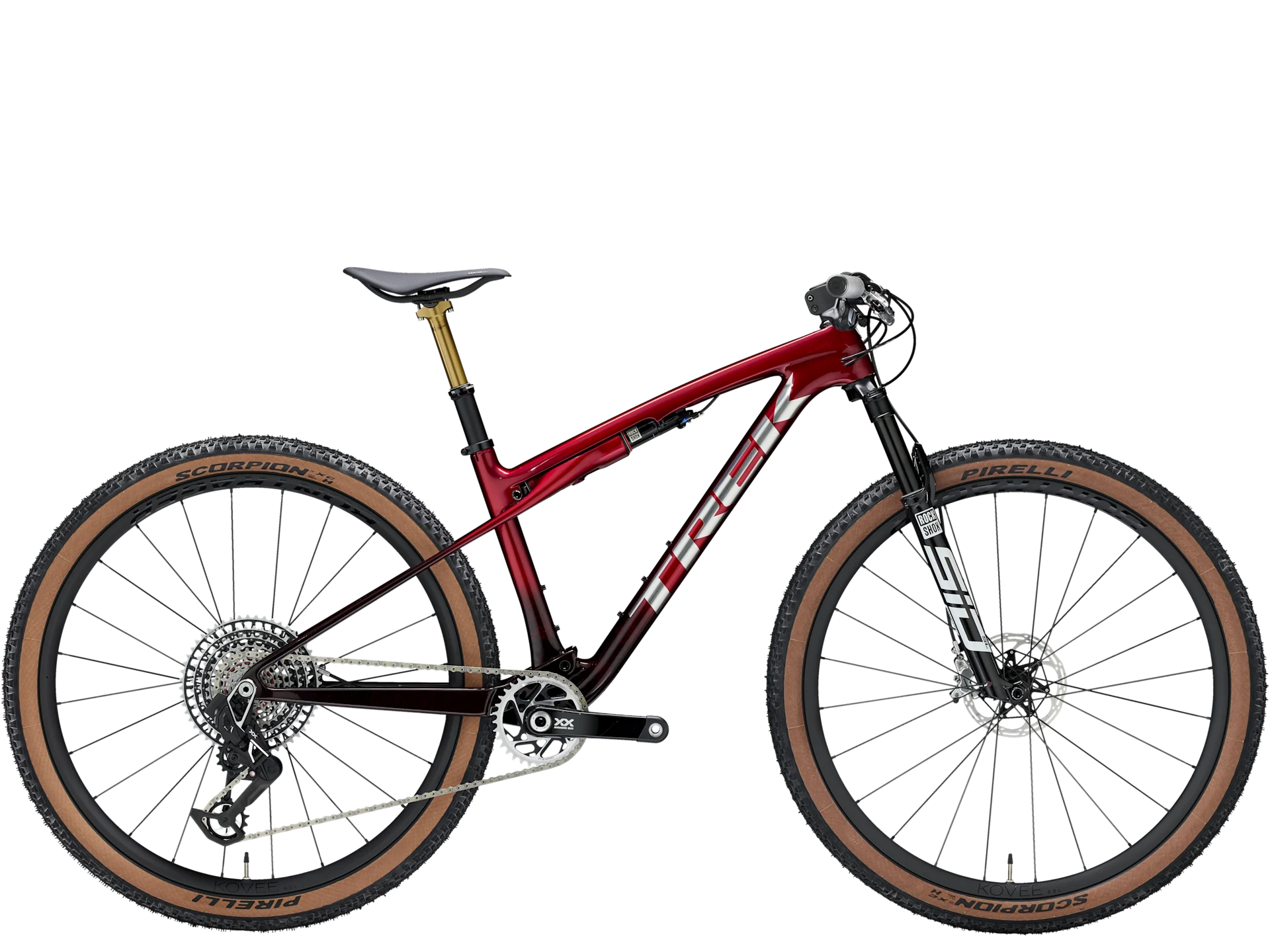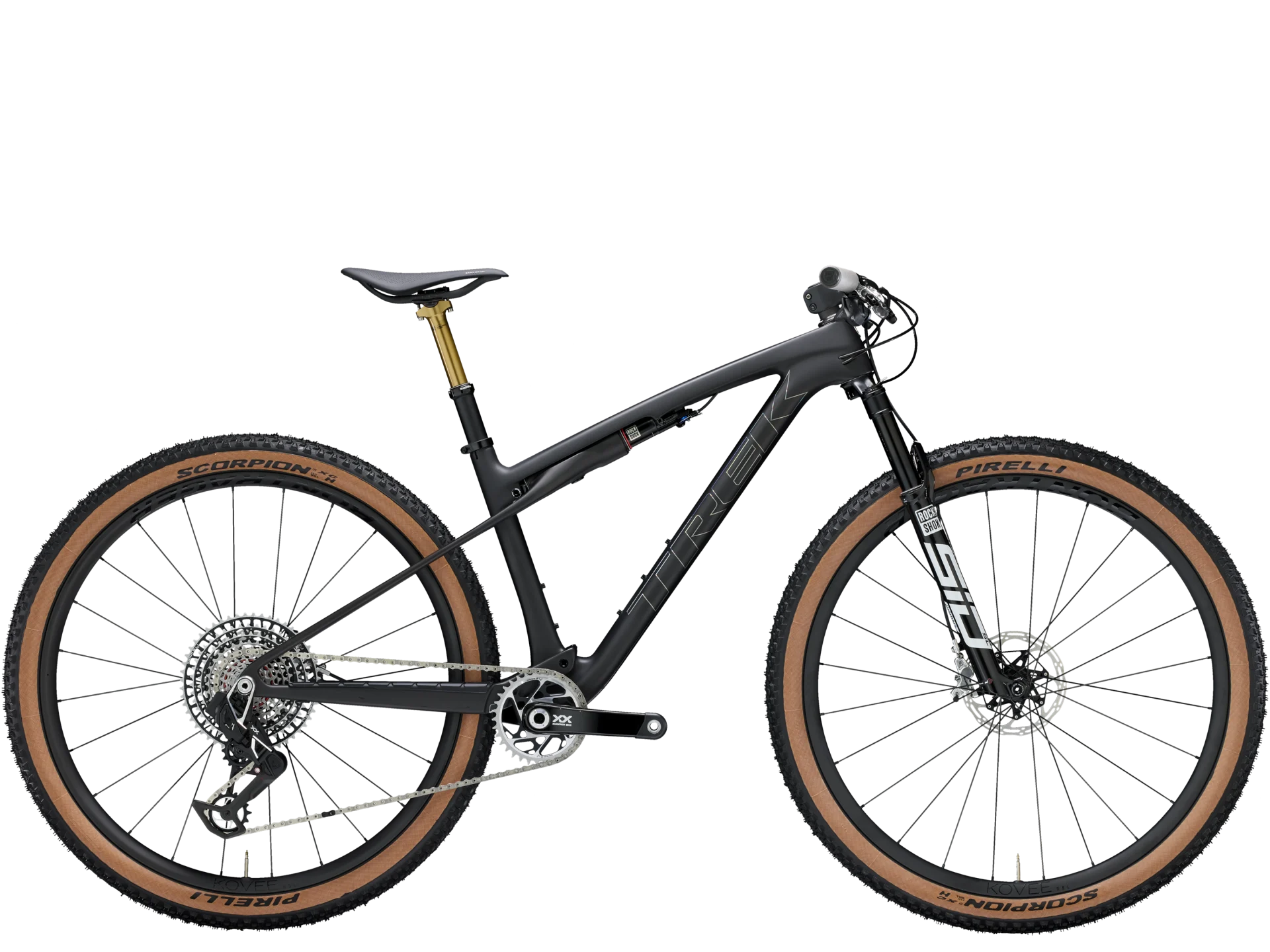 Einen federleichten Rahmen aus hochmoduligem SLR OCLV Mountain Carbon mit moderner XC-Geometrie. Außerdem bekommst du eine RockShox SID SL Ultimate 110-mm-Federgabel mit DebonAir-Federung und Charger Race Day Dämpfung und einen RockShox SIDLuxe IsoStrut 80-mm-Hinterbaudämpfer – natürlich komplett mit Remote-Lockout. Eine ultraleichte, komplett drahtlose elektronische SRAM XX SL AXS 12fach-Transmission, Bontrager Kovee RSL Carbonlaufräder, eine integrierte Bontrager RSL Lenker/Vorbau-Einheit aus Carbon, eine FOX Transfer SL Variosattelstütze und hydraulische SRAM Level Ultimate 4-Kolben-Scheibenbremsen runden das Ausstattungspaket ab.