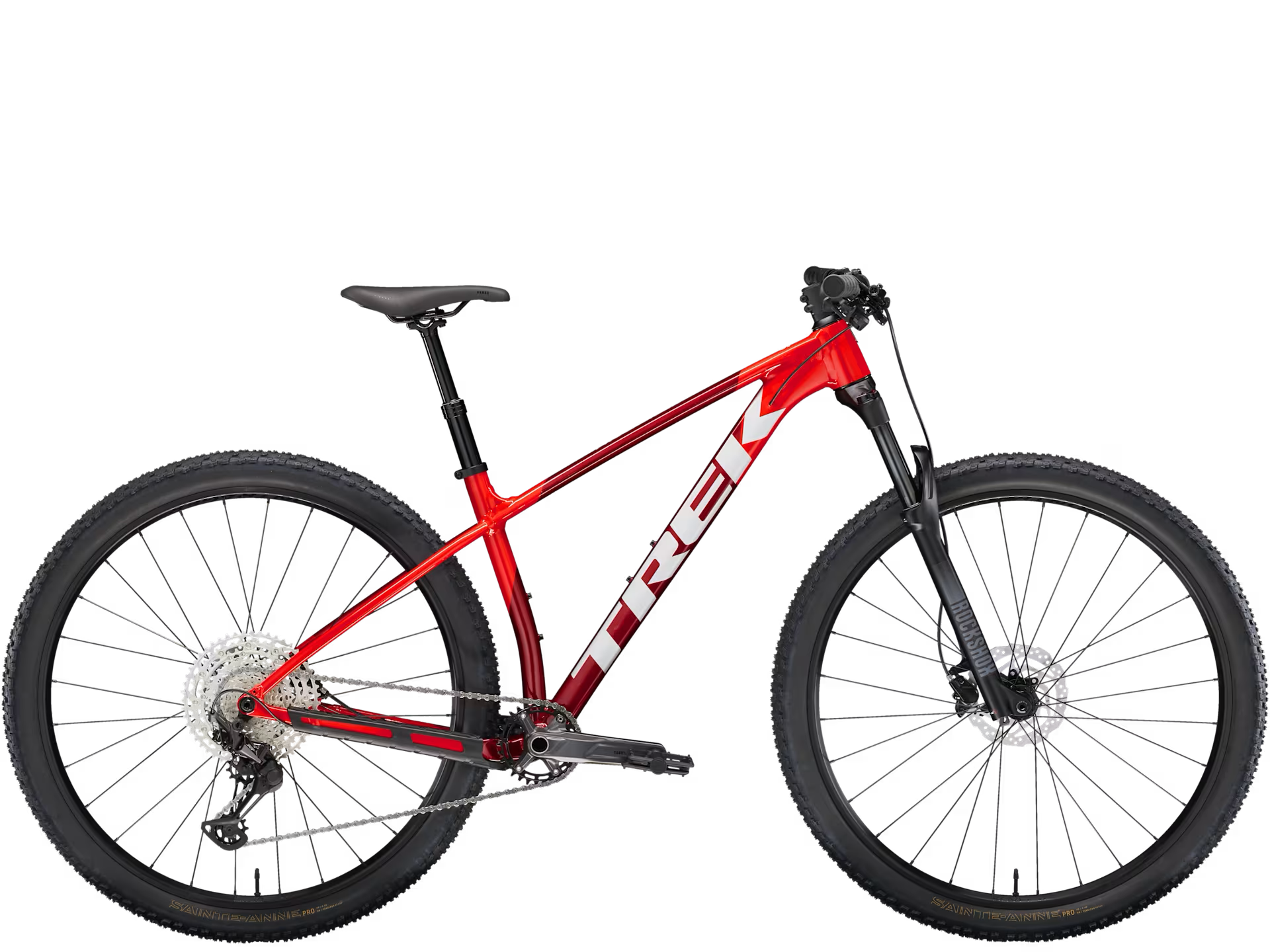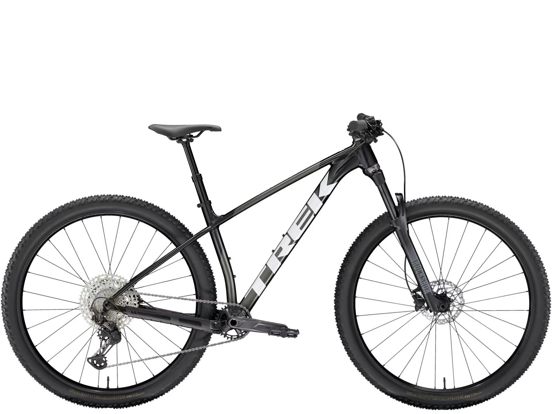 Einen leichten Hardtail-Rahmen aus Alpha Platinum Aluminium mit moderner XC-Geometrie samt 148 mm Boost-Einbaubreite für mehr Steifigkeit und Stabilität unter Last sowie eine trailglättende RockShox Judy Silver Gabel mit 120 mm Federweg, Solo Air Luftfeder und TurnKey-Lockout. Dazu bekommst du einen sauber schaltenden 12fach-Antrieb mit Shimano XT/Deore Komponenten, Bontrager Kovee Tubeless-Ready-Laufräder, eine Bontrager Line Variosattelstütze mit interner Zugführung und hydraulische Scheibenbremsen.