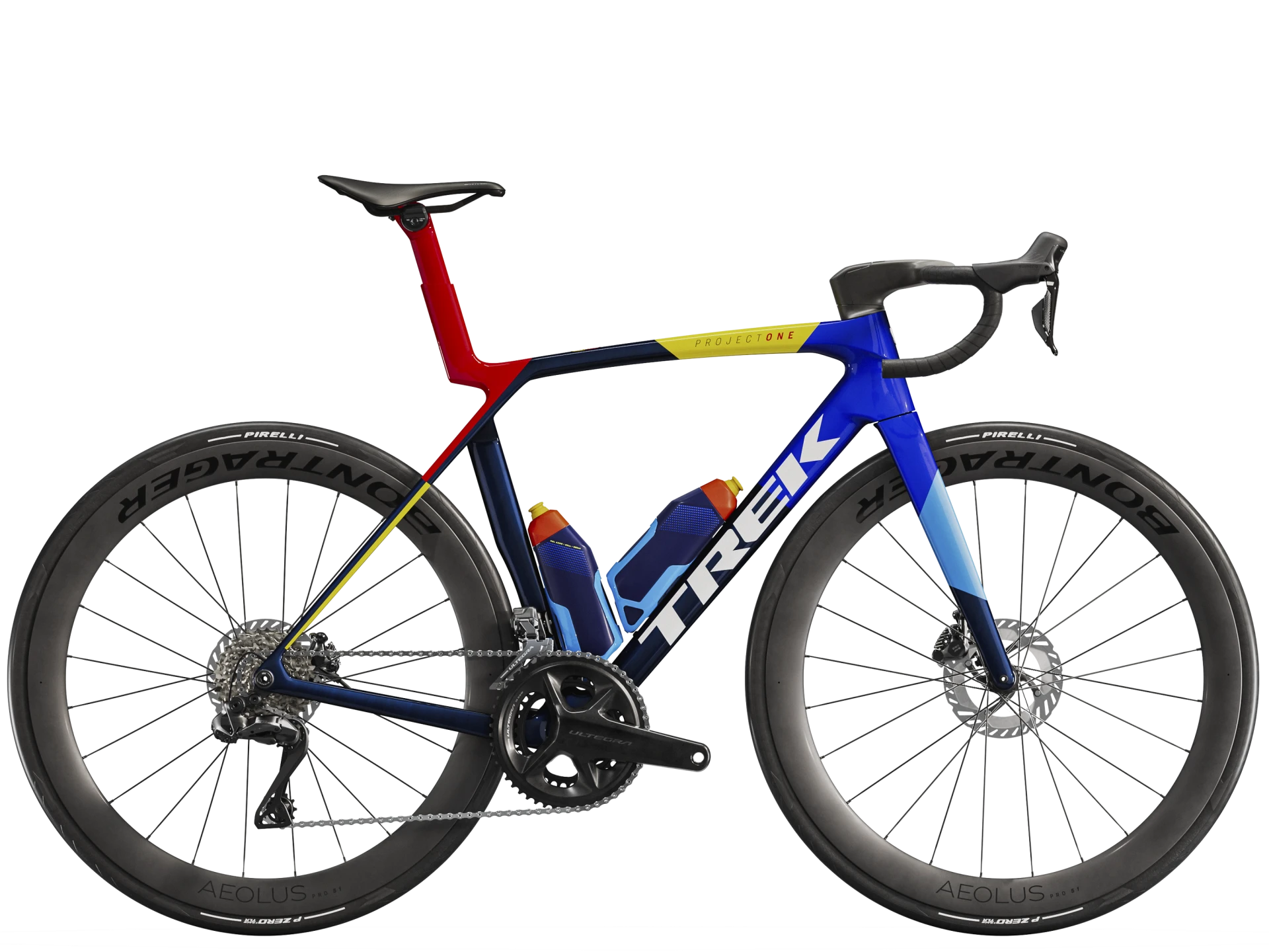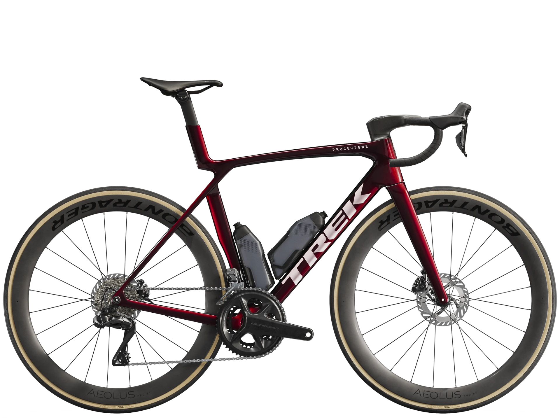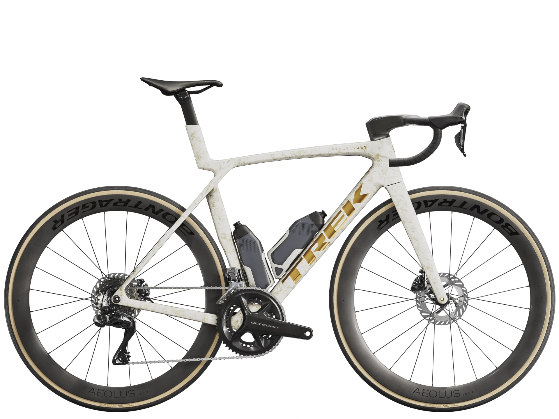 Einen unglaublich leichten, aerodynamisch optimierten Rahmen aus unserem besten 900 Series OCLV Carbon samt IsoFlow-Komforttechnologie und Watt-sparenden RSL Aero Trinkflaschen und Flaschenhaltern. Einen blitzschnell schaltenden Shimano Ultegra Di2 2x12-Antrieb, der sich individuell programmieren lässt, während das verbaute, weit verbreitete Universalschaltauge (UDH) die Ersatzteilbeschaffung erleichtert. Abgerundet wird die Ausstattung von schlauchlosen Bontrager Aeolus Pro 51 Carbonlaufrädern und einer einteiligen Trek Aero RSL Lenker/Vorbau-Einheit.