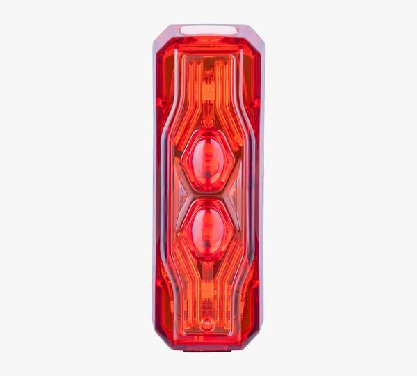 Ausgestattet mit 5 leuchtstarken roten LEDs bietet das Rücklicht im Blinkmodus eine Helligkeit von bis zu 250 Lumen und ist damit aus einer Entfernung von bis zu 1.8 km sichtbar. Dies gewährleistet die Sicherheit des Fahrers, insbesondere bei schlechten Lichtverhältnissen.