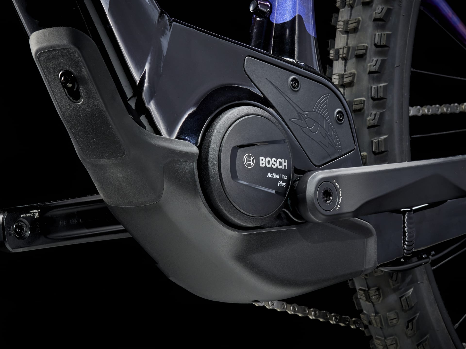Einen Rahmen aus Alpha Gold Aluminium mit waschechter Mountainbike-Geometrie und einer 120-mm-Gabel mit Luftfederung. Angetrieben wird es von einem zuverlässigen Bosch Active Line Plus Motor, der dich mit seinen 50 Nm Drehmoment bis zu einer Geschwindigkeit von 25 km/h unterstützt. und von einer kompakten Purion 200 Remote mit integriertem Display gesteuert wird. Außerdem bekommst du eine Shimano Deore 12fach-Schaltung und kraftvoll zupackende hydraulische Scheibenbremsen sowie 2,6 Zoll breite Tubeless-Ready-Reifen für zusätzlichen Grip und erhöhten Pannenschutz.