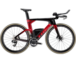 Einen ultraleichten Rahmen aus 800 Series OCLV Carbon, windschnittige Rohre mit Kammtail Virtual Foil-Profil (KVF), eine Speed Concept Carbongabel mit aerodynamischem Profil, straßenglättendes IsoSpeed, integrierte Aufbewahrungslösungen für Verpflegung, Flüssigkeit und Pannenkit, einen drahtlosen, elektronischen SRAM RED AXS 12fach-Antrieb mit SRAM AXS Blips Schalthebeln, ein SRAM RED AXS Powermeter, eine vollständig integrierte Lenker/Vorbau-Einheit, einen triathlonspezifischen Bontrager Hilo Pro Carbonsattel für eine aggressive Aero-Sitzposition, zuverlässig zupackende Scheibenbremsen und aerodynamische Bontrager Aeolus RSL 51 Laufräder aus OCLV Carbon.